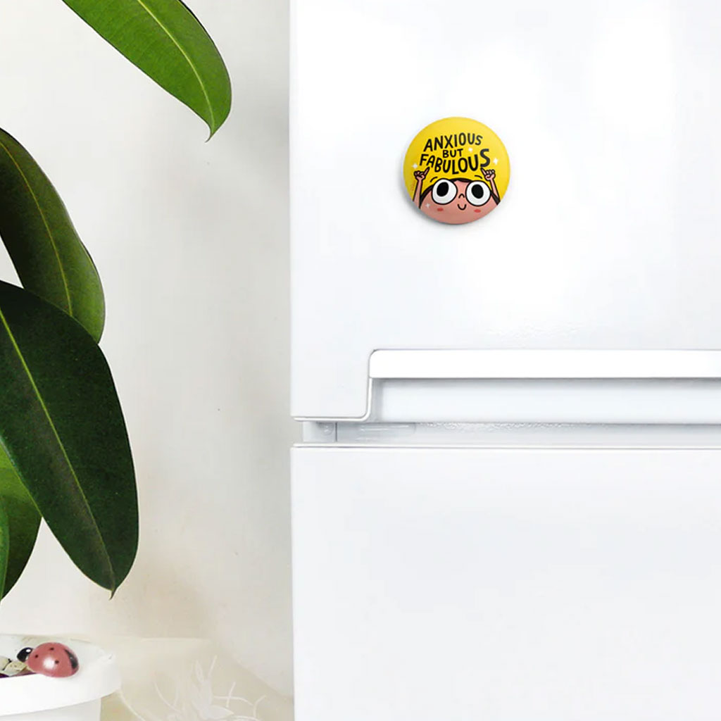 This Anxious But Fabulous Badge With Magnet is perfect for those who juggle nerves with confidence. Bright, bold, and full of personality—stick it on your fridge, bag, or jacket and let your fabulous side shine through!