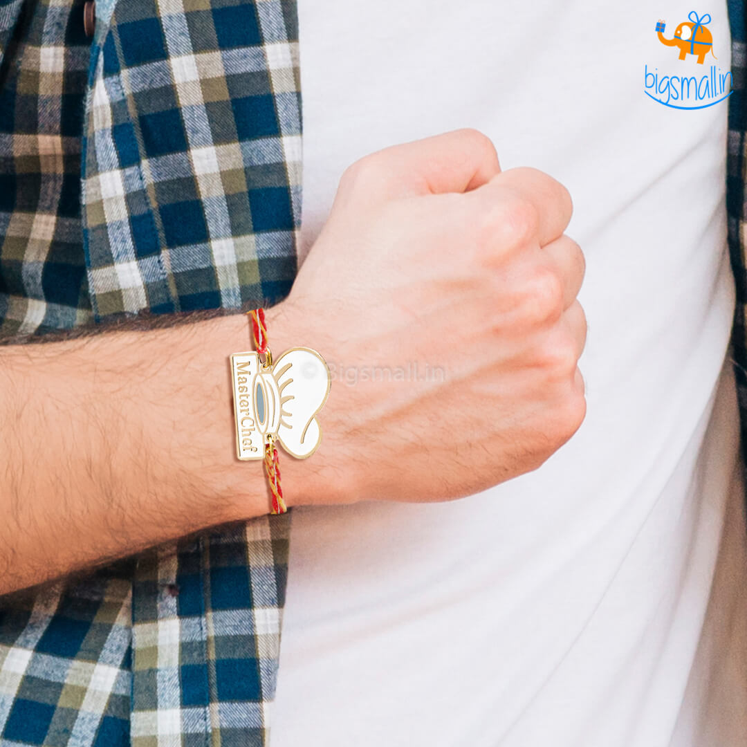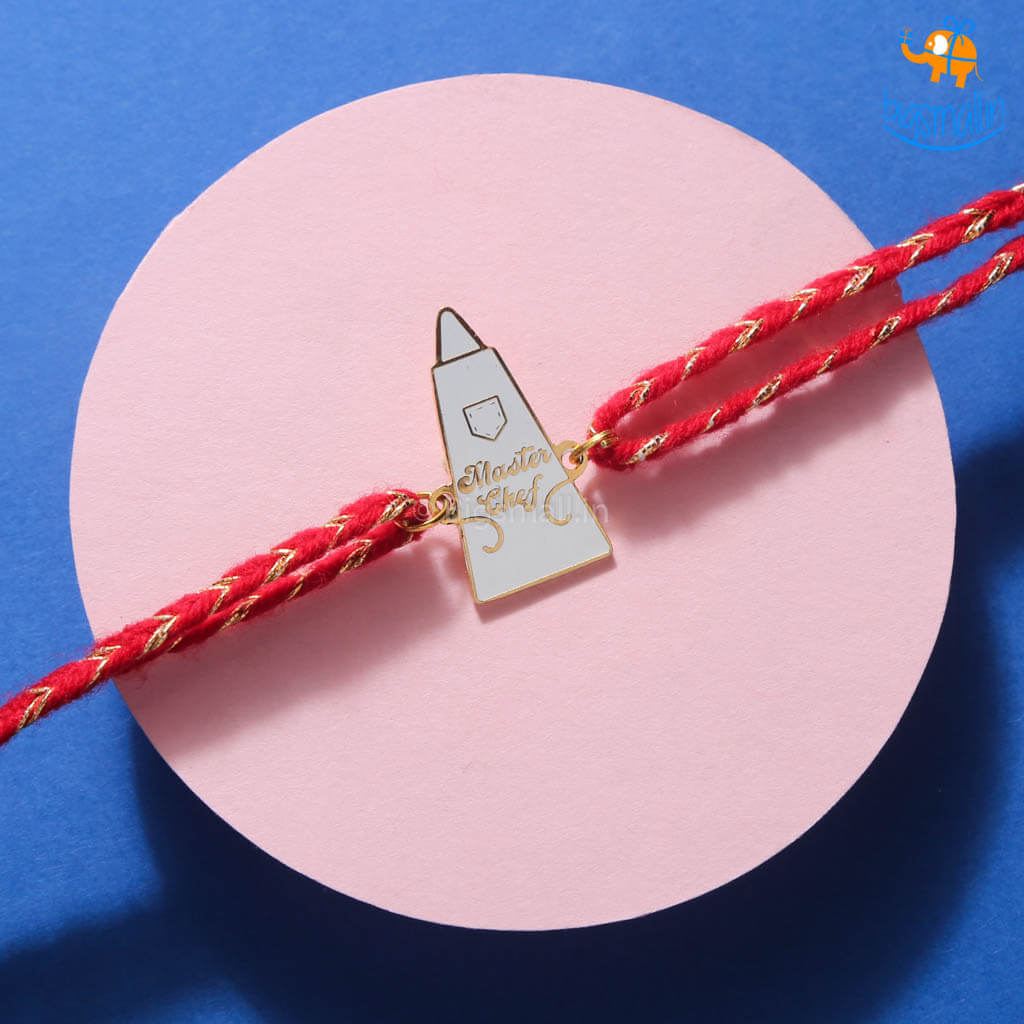 Still remember the first meal your brother cooked for you? Order a dish in a restaurant but don't like it because your bro makes it best? If you grew up eating all the experimental recipes made by your brother and loved all of them, it's time you give him credit for that. Celebrate his love for cooking this Rakhi season with this personality-specific Rakhi. Master-chef Bro Rakhi that comes with a metal sheet embellishment in the shape of a toque or chef's hat.