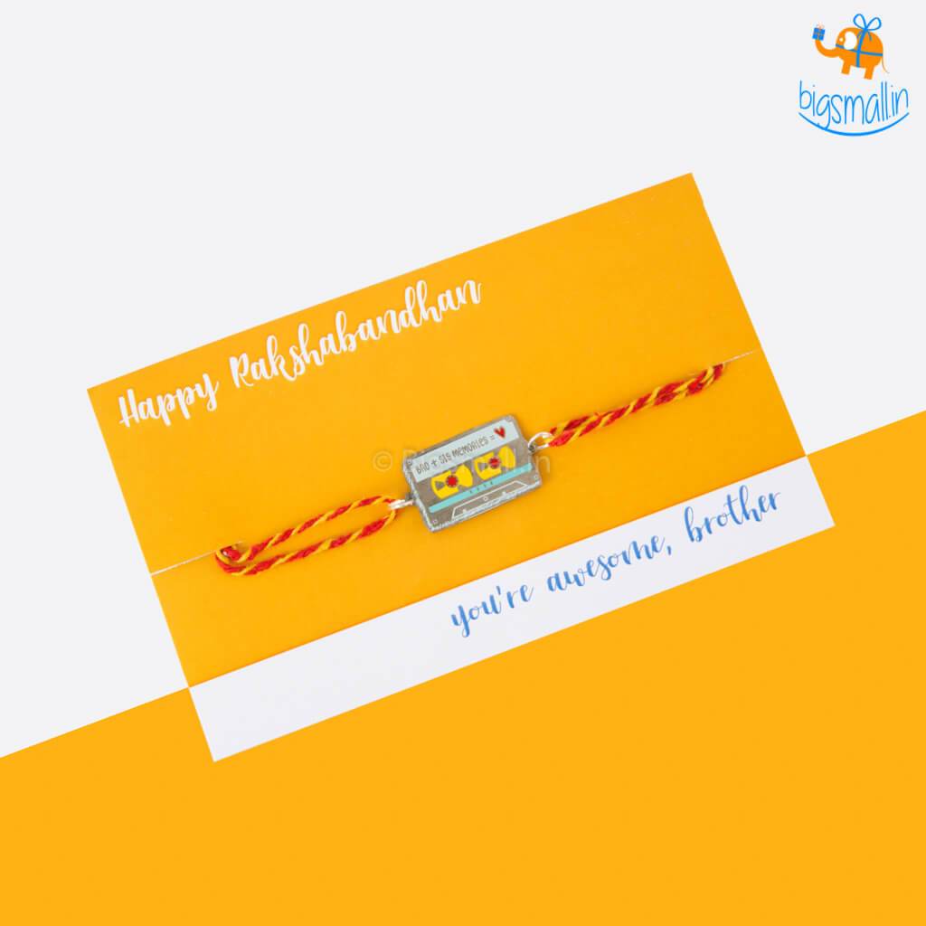 Remember Ross and Monica's famous 'routine'? If you guys have musical memories of your own, a mixtape, CD or a DVD perhaps, your sibling would probably love this personality specific Mixtape Memories Rakhi. With a brass metal sheet embellishment in the shape of a cassette with the phrase, "Bro + Sis Memories= <3", this rakhi cum bracelet is designed to infuse a sense of warm nostalgia.