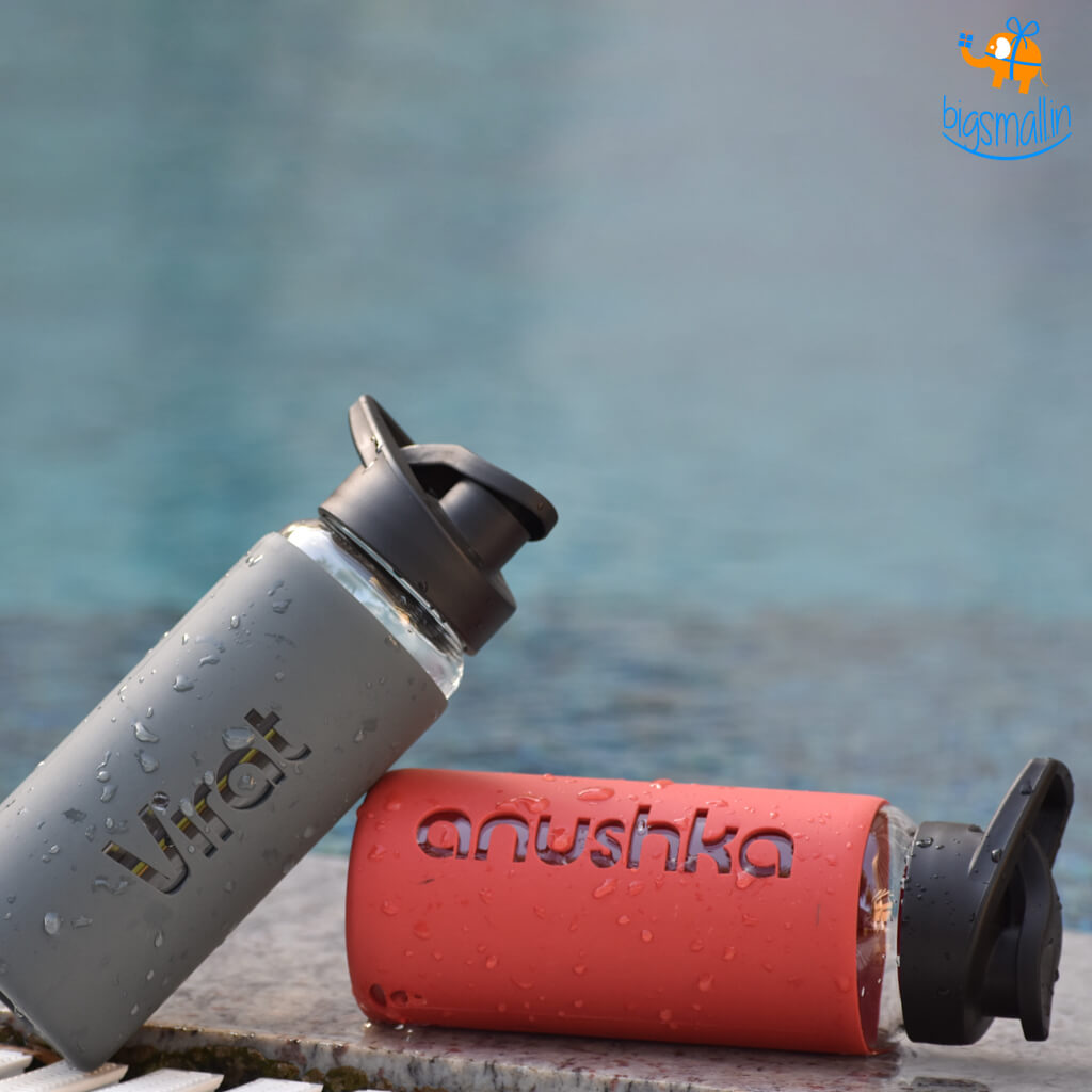 Going to the gym or dance class and losing your water bottle in a sea of normal-looking bottles regularly? Or want to gift your buddy something useful but unique at the same time? Presenting Personalized Name Water Bottle, a sturdy glass bottle with silicone cover with your name written on it. You can customize the bottle with any name, all you have to do is just send us a name and we will work our magic. The wide mouth makes it easy to clean and the protective silicone sleeve provides for a non-slip gripping surface which helps prevent breakage. This is one of the best gifts online which makes for a great personalized birthday gift for a friend or family member.