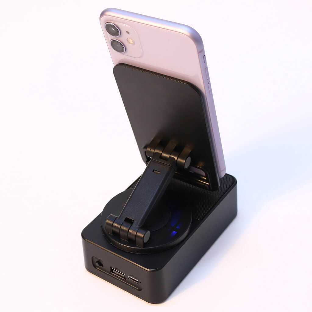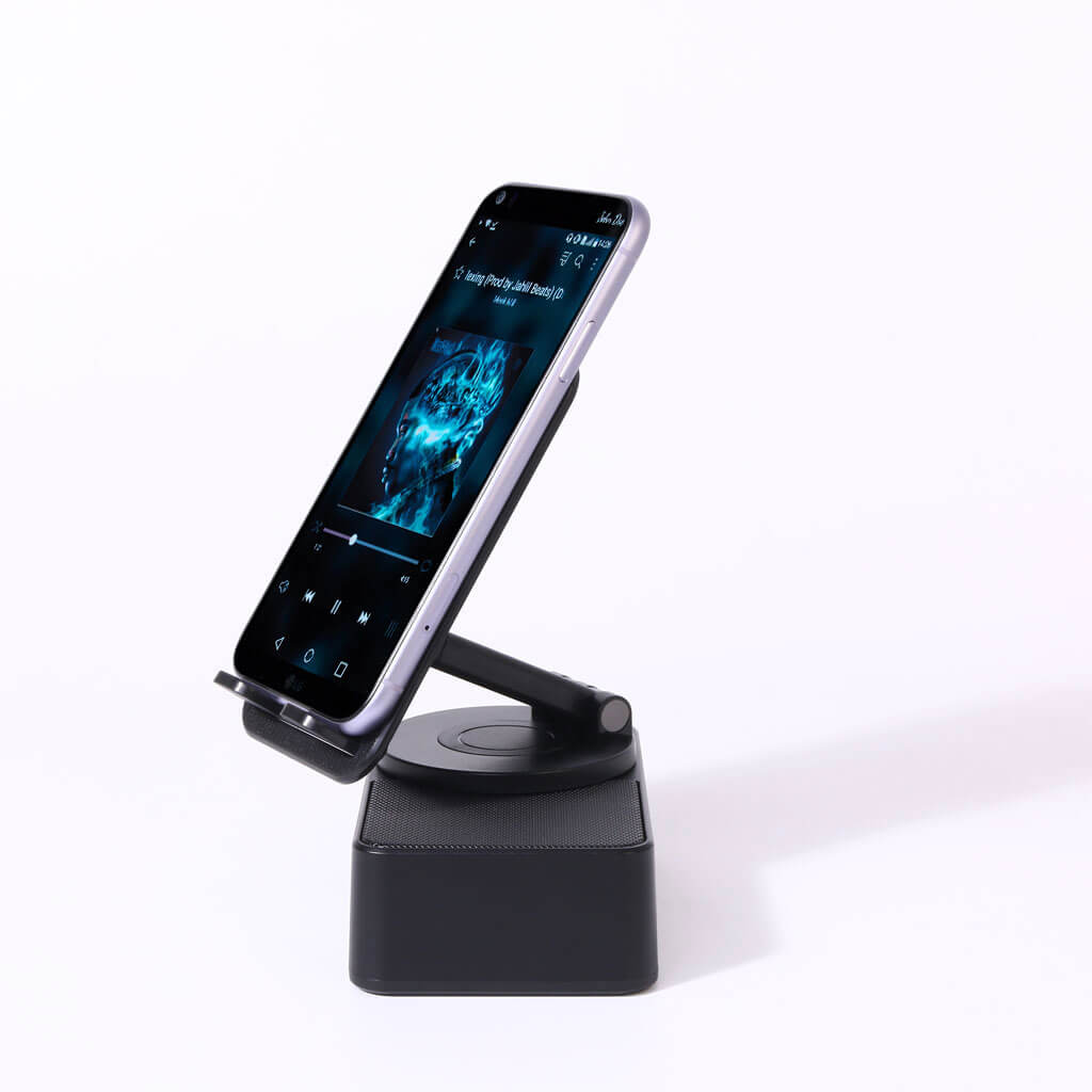 Package Includes: 1 x Magnetic Closure Notebook, 1 x Temperature Flask Bottle, and 1 x Phone Holder with Bluetooth Speaker and 1 x Matte Black Pen