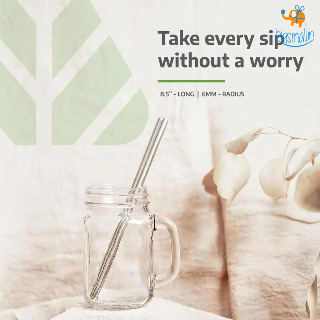 These attractive Metallic stainless steel eco-friendly Straws  are a great option to use in place of single-use plastic straws. The set includes two straight and two bent straws. The package also has a cleaner to easily clean the straws. The metallic finish will look great on a dinner table. The stainless steel also makes it easy to carry around. It'll be a great gift for someone who is a fitness freak and likes to make fruit shakes and juices and is environmentally conscious.