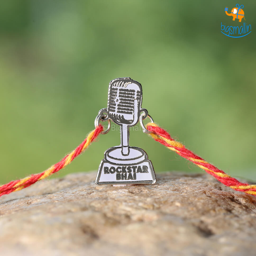 Grew up listening to your brother's angelic vocals? Always supported him in whatever competitions he participated in? If so, then this rakhi is perfect for him. Celebrate your undeniable strong bond and your unwavering support this Rakhi season with this personality-specific Rakhi. Rockstar Bhai Rakhi comes with a metal sheet embellishment in the shape of a microphone.