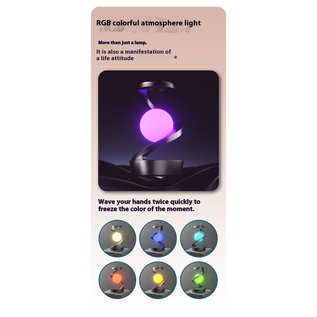Step into the future with the Rotating Suspension Lamp, a mesmerizing fusion of innovation, elegance, and practicality. Featuring a hovering, rotating lamp, vibrant colorful light modes, and a hand wave sensor for effortless control, this lamp redefines modern lighting. Designed with built-in wireless charging, it’s the perfect addition to any workspace or home, offering both convenience and cutting-edge style.